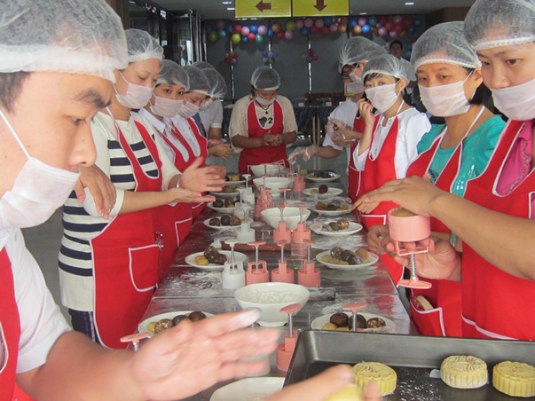 走進(jìn)世博大廈服務(wù)中心,鮮花隨處可見(jiàn),華美的裝修設計使人心曠神怡,現場(chǎng)充滿(mǎn)了濃郁的節日氛圍。大家熱情高漲、十分投入,和面、搟皮,包餡,然后刷上蛋液,撒上芝麻,最后烘烤出爐。員工們邊動(dòng)手制作月餅邊盡情享用自己的“完美作品”,并拍照留念,記錄下了許多歡樂(lè )的瞬間。而現場(chǎng)專(zhuān)業(yè)的月餅師傅則耐心地傳授制作月餅的要領(lǐng),聽(tīng)得大伙頻頻點(diǎn)頭。另外,除了可以親手制作月餅,還可現場(chǎng)烘焙,讓員工們可現場(chǎng)品嘗至自己制作的月餅,活動(dòng)現場(chǎng)處處洋溢著(zhù)溫馨和美的氣氛……