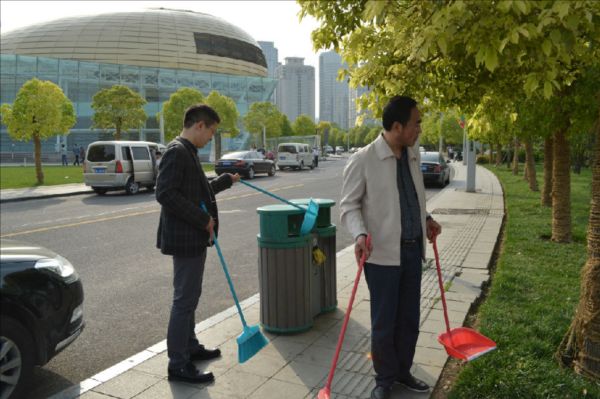 顧不上欣賞春光明媚、水靜人和的美景,碧波蕩漾的如意湖畔出現了建投志愿者服務(wù)隊的身影,大家拿起掃帚、垃圾袋等工具一路前行,看見(jiàn)沿岸偶爾零散的垃圾或不易發(fā)現的紙屑便主動(dòng)上前進(jìn)行清理,很快,如意湖周邊的石柱、圍欄、長(cháng)椅就煥然一新,廣場(chǎng)周邊散落的紙屑、煙頭也被清掃干凈。