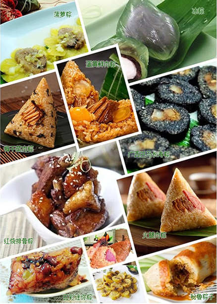 如今的粽子更是多種多樣,璀璨紛呈?,F今各地的粽子,一般都用箬殼包糯米,但內含的花色則根據各地特產(chǎn)和風(fēng)俗而定,著(zhù)名的有桂圓粽、肉粽、水晶粽、蓮蓉粽、蜜餞粽、板栗粽、辣粽、酸菜粽、火腿粽、咸蛋粽等等。