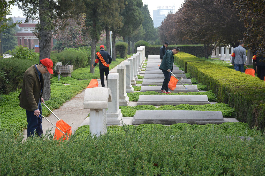 三、開(kāi)展“倡議文明緬懷,減少廢棄污染”拾撿垃圾志愿服務(wù)活動(dòng)。緬懷先烈活動(dòng)結束后,市建投公司志愿者們在烈士陵園內開(kāi)展“倡議文明緬懷,減少廢棄污染”拾撿垃圾志愿服務(wù)活動(dòng)。每位志愿者都手持垃圾鉗,認真將散落在紀念碑前以及隱藏在雜草中的廢棄鮮花、飲料瓶、紙張等垃圾拾撿起來(lái)放入提前準備好的垃圾袋中?;顒?dòng)持續一個(gè)小時(shí),志愿者們在祭奠先烈的同時(shí)以自己的實(shí)際行動(dòng)表達崇敬之情,并倡導以獻一束花、敬一杯酒、植一棵樹(shù)、清掃墓碑等方式寄托哀思,將祭拜逝者的傳統習俗以更加環(huán)保、健康、安全、文明的方式表達,營(yíng)造文明祭祀的良好氛圍。