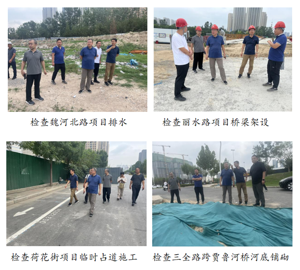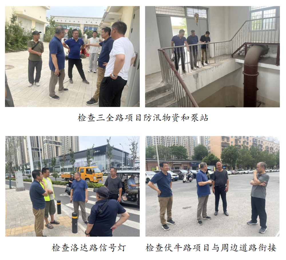 黃志澎分別檢查了魏河北路項目的排水、麗水路項目的橋梁架設和道路施工、洛達路項目和荷花街項目與周邊道路的安全銜接、三全路項目的河道鋪砌和下穿鐵路涵洞泵站,并查看了防汛物資準備情況。