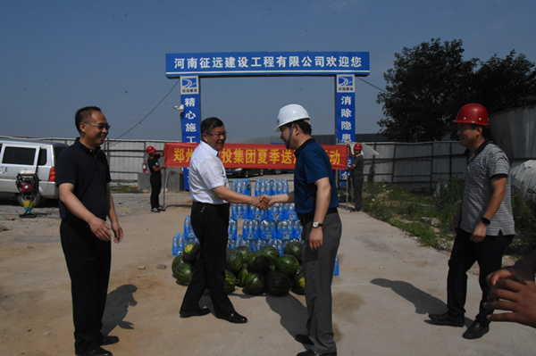 盛夏時(shí)節,高溫炎熱。6月22日上午,由集團公司黨委和工會(huì )主辦,市政工程建設管理中心、綜合部、黨群部承辦的“送清涼、保健康、促和諧”慰問(wèn)活動(dòng),走進(jìn)市政工程建設施工現場(chǎng),為烈日下辛勤工作的一線(xiàn)工人兄弟送去西瓜、水等防暑降溫物資,送上集團公司的親切關(guān)懷和問(wèn)候。