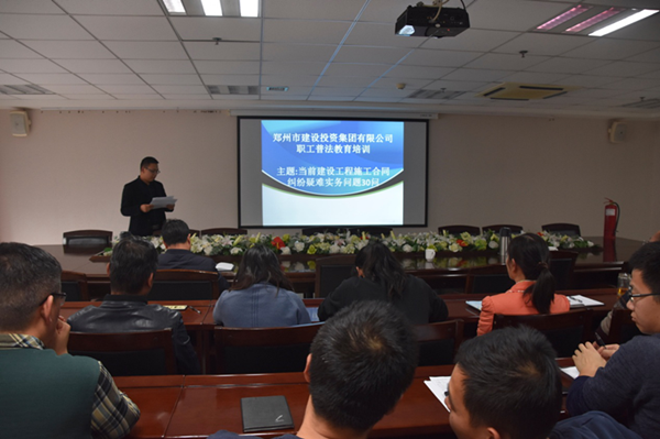 11月30日下午,根據《鄭州市人民政府國有資產(chǎn)監督管理委員會(huì )關(guān)于印發(fā)鄭州市國資系統2018年“12·4”國家憲法日集中法治宣傳活動(dòng)方案的通知》要求,為弘揚憲法精神,建設法治鄭州,集團公司在25樓會(huì )議室開(kāi)展了《建設工程施工合同糾紛疑難實(shí)務(wù)問(wèn)題》解讀培訓活動(dòng)。本次教育培訓活動(dòng)為視頻培訓,培訓課件主講人為袁華之律師,集團公司80多名員工參加本次活動(dòng)。