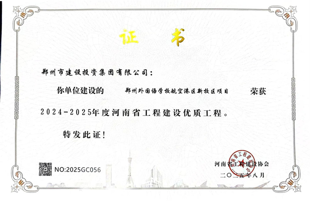 在各參建單位的共同努力下,該項目順利通過了河南省工程建設協(xié)會組織的優(yōu)質工程評選,榮獲了2024-2025年度河南省工程建設優(yōu)質工程。